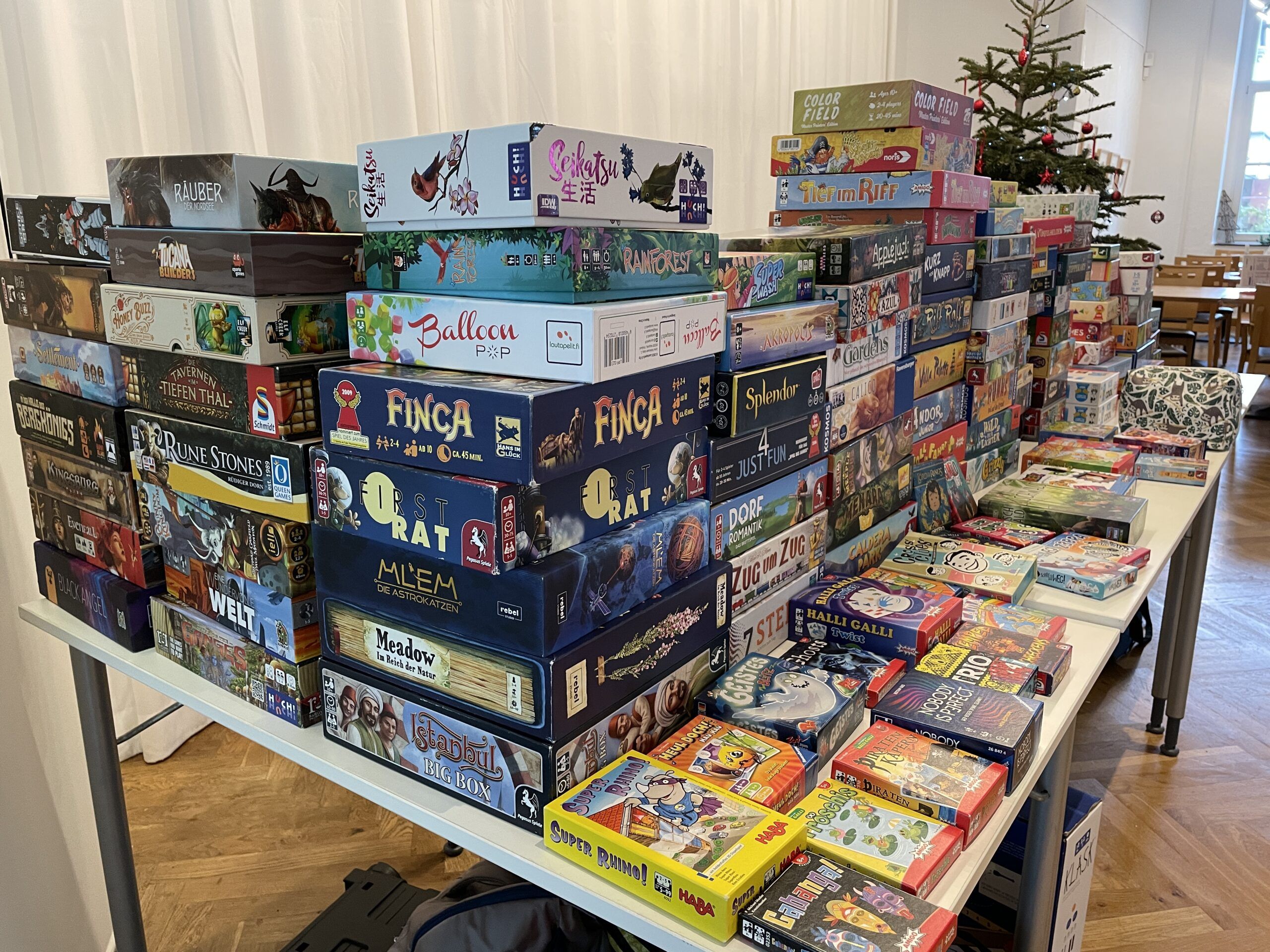 Aber auch die Spieleausleihe war proppenvoll, und die Besuchenden standen vor meterlangen Spieleschachteln, die sich in die Höhe türmten.