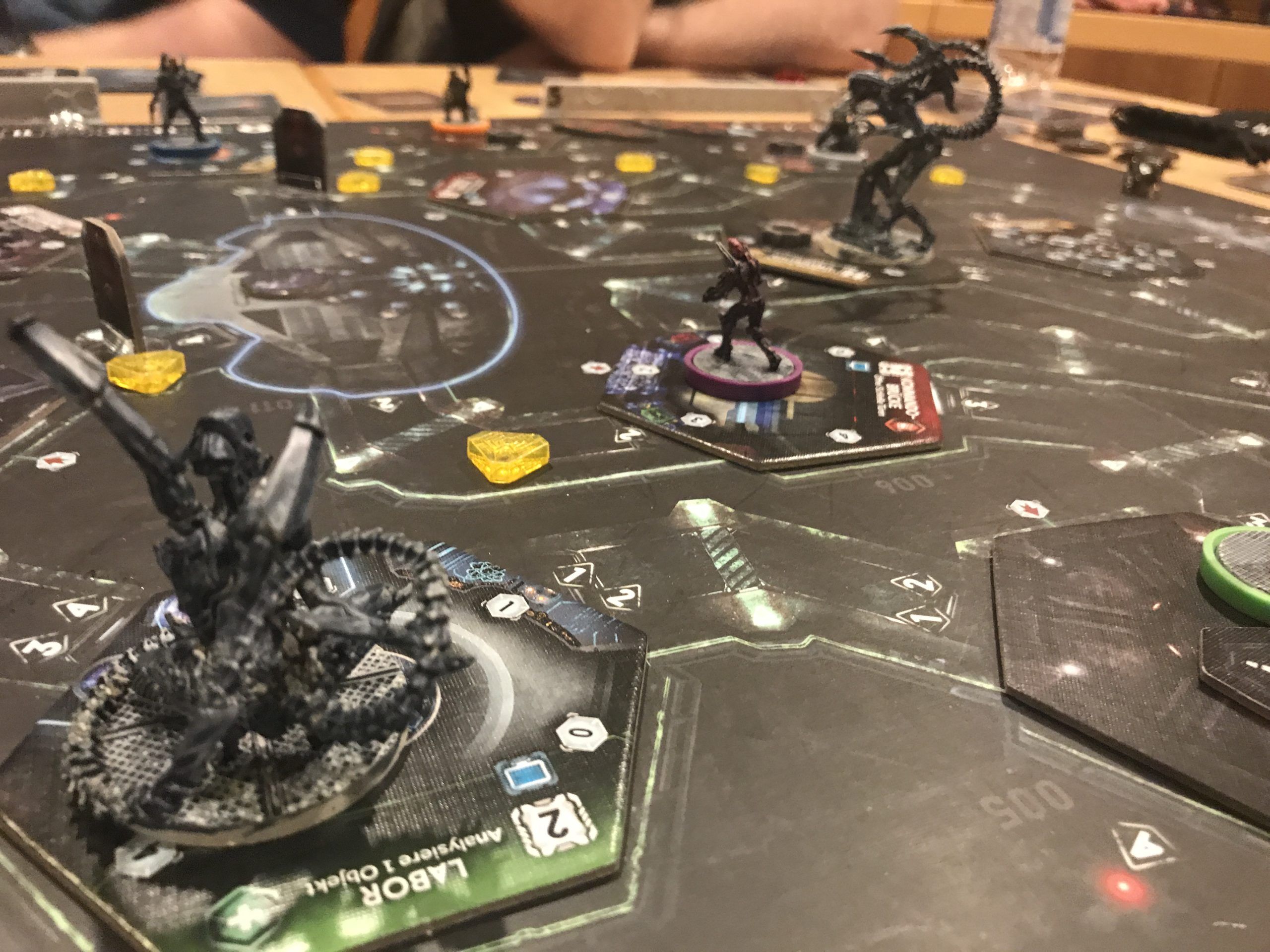 Ja, anders kann man es nicht sagen: DIE BUDE WAR VOLL! Sehr voll sogar. Ich zählte um die 55 Menschen, und da waren längst nicht alle aufgezählt. Damit haben wir bestimmt die 60 erreicht. Alle Tische waren besetzt, so dass sogar aus dem Kabuff noch weitere Tisch rangekarrt werden mussten. Und diese wurden schon recht schnell mit Spielen bedeckt.