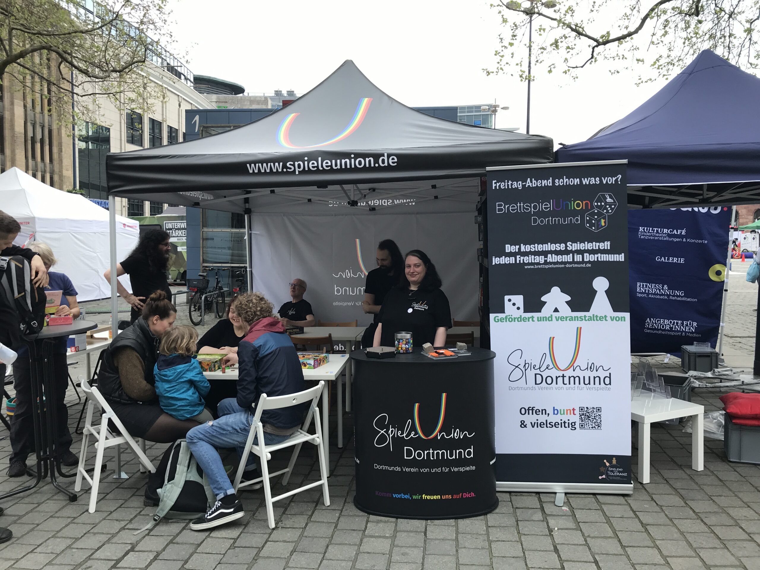 An dem Sonntag kamen schon sehr früh viel sehr viele ehrenamtliche Menschen zusammen, um Stände aufzubauen, Pavillons hoch zu ziehen und die Innenstadt zu dekorieren. Auch die SpieleUnion Dortmund machte sich gleich mit fast 10 Ehrenamtlichen auf, Spiel und Spiele Interessierten näher zu bringen. Dabei hatten sie unterschiedliche Ziele im Fokus.