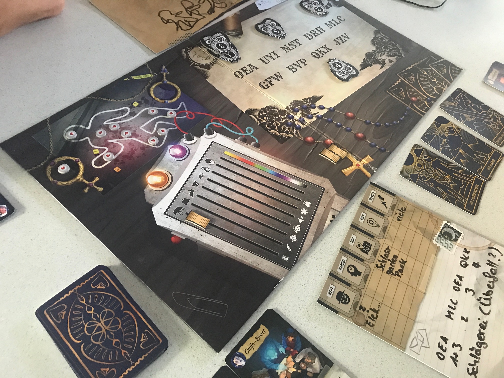 Wir hatten wieder so einige Spiele im Gepäck. Mit mehreren Koffern und großen Taschen kamen wir an und konnten (zum Glück) bis zur Tür vorfahren, um die vielen Spiele in den Gartensaal zu bringen. Aber nicht nur wir von der SpieleUnion hatten genügend Spiele im Gepäck bei den Veranstaltungen. So brachten auch die Besuchenden eine Menge Spiele mit, und die Tische verwandelten sich schnell in bunte Spielwiesen.