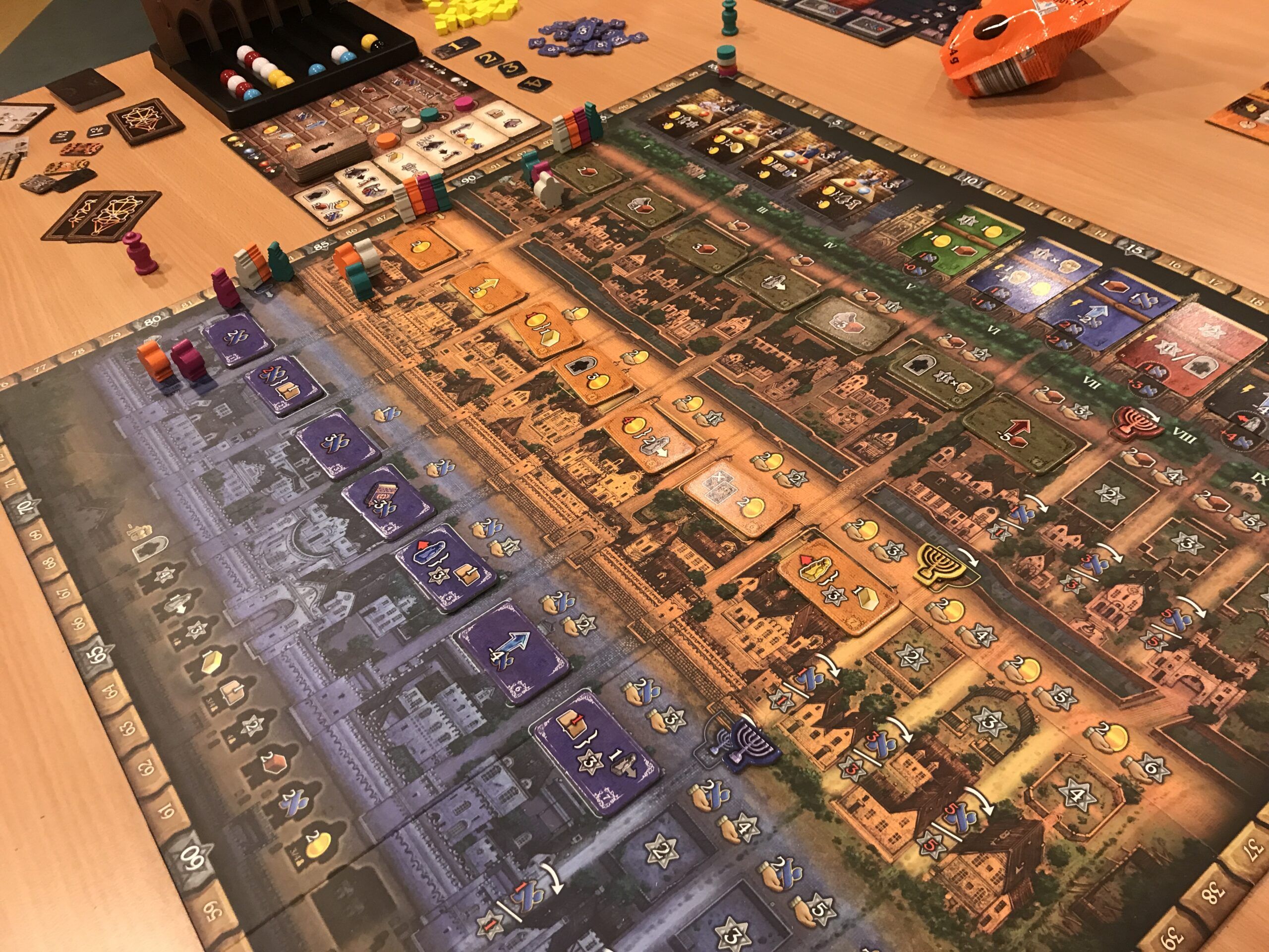 Einige Menschen kamen in Flamecraft in Drachenzusammenkunft und schoben sich ordentlich die Ressourcen hin und her zu. Andere schipperten den Ganges entlang und bauten Provinzen aus – Rajas of the Ganges. Wieder andere zeigten ihre Treue oder Untreue im social deduction Spiel Panic Station. Im Living Forest wurden Karten gesammelt, Feuer gelöscht und Bäume gepflanzt. Auf einem Schrottplatz bauten tüchtige Ratten eine Rakete zusammen, um als First Rat den Käsemond zu erreichen. Eine Stadt lag in Angst und Schrecken in Horrorfied. Und kleine Roboter hatten Ideen und bauten Gegenstände zusammen in Transmissions.