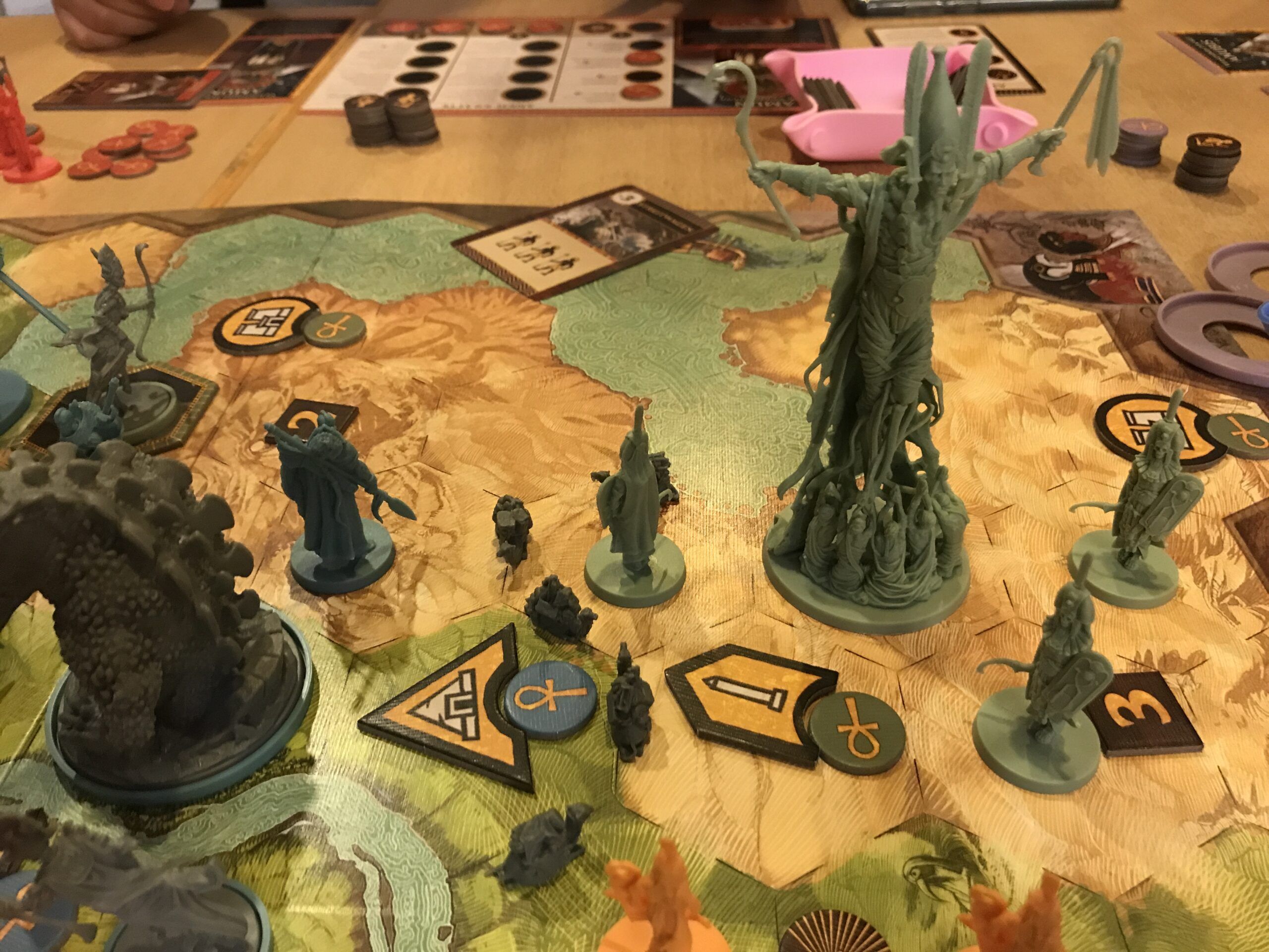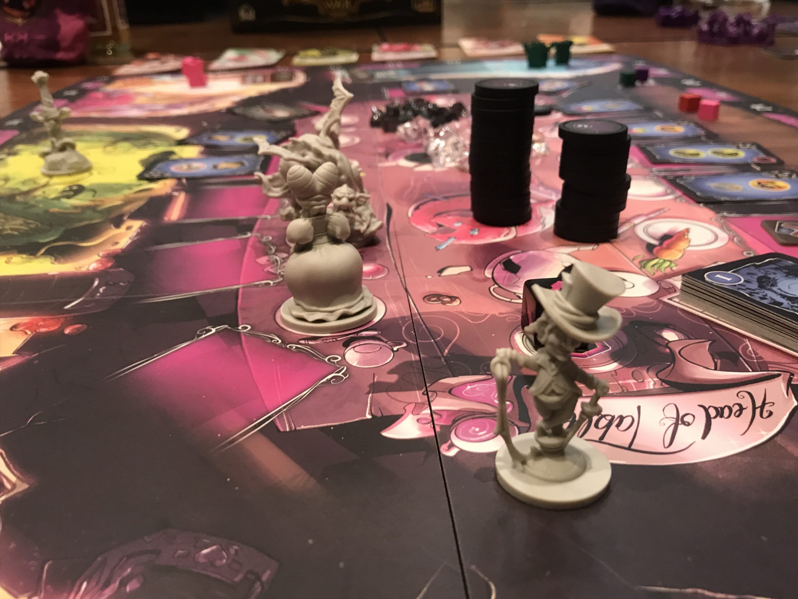 Aber wir kommen ja vor allem zusammen, um zu spielen, und gespielt wurde lange. Bis nach 2:00 Uhr morgens kamen kleine, mittelgroße und große Spiele auf die Tische. Spiele wie Ankh, Eine wundervolle Welt, Marco Polo, Nemesis, Wizard, Too many bones, Hippocrates, Hai-Alarm!, Secret Hitler, Die Tavernen im tiefen Thal, Cthulhu und und und … Diese Liste könnte man noch lange weiterführen.