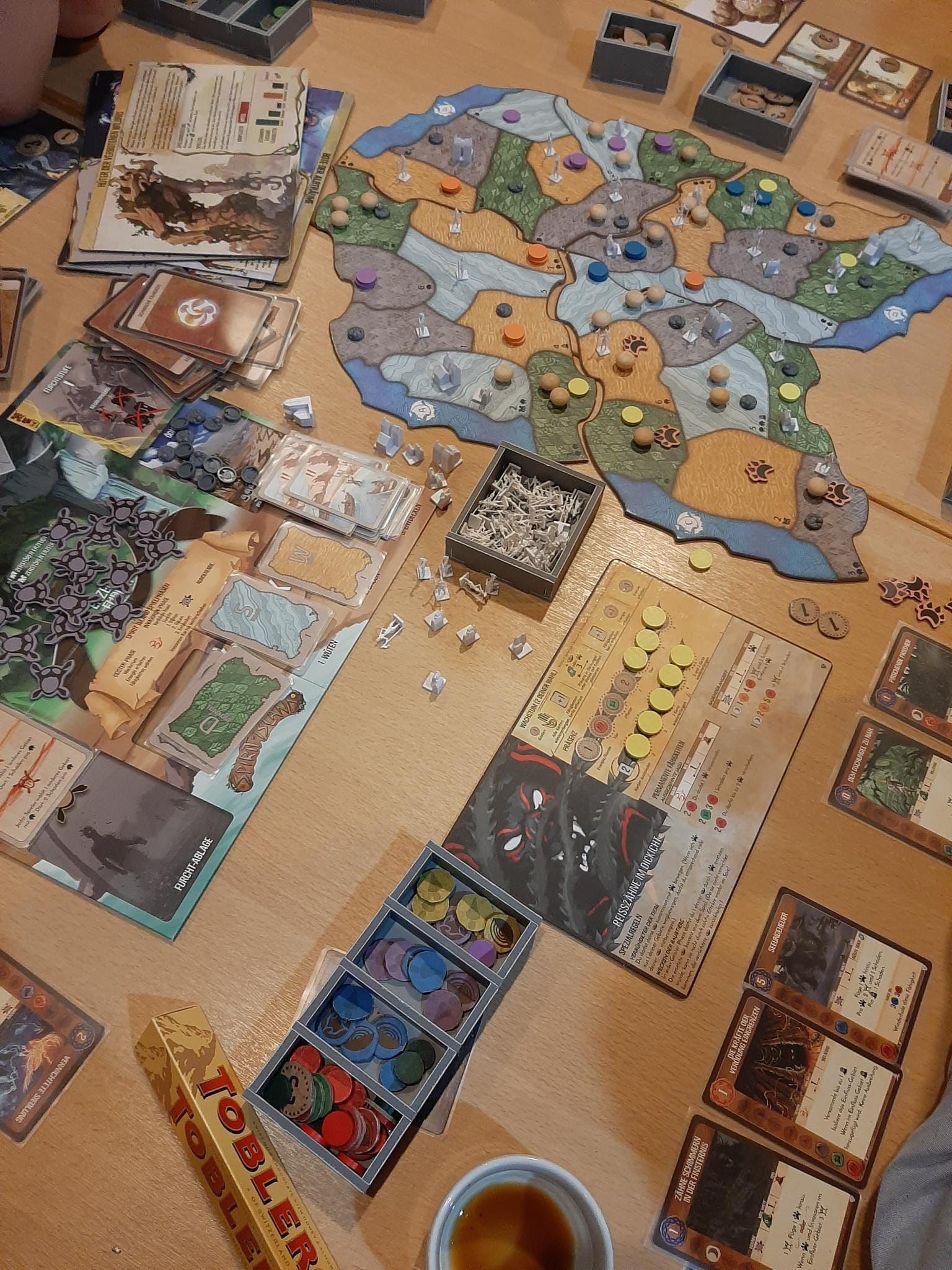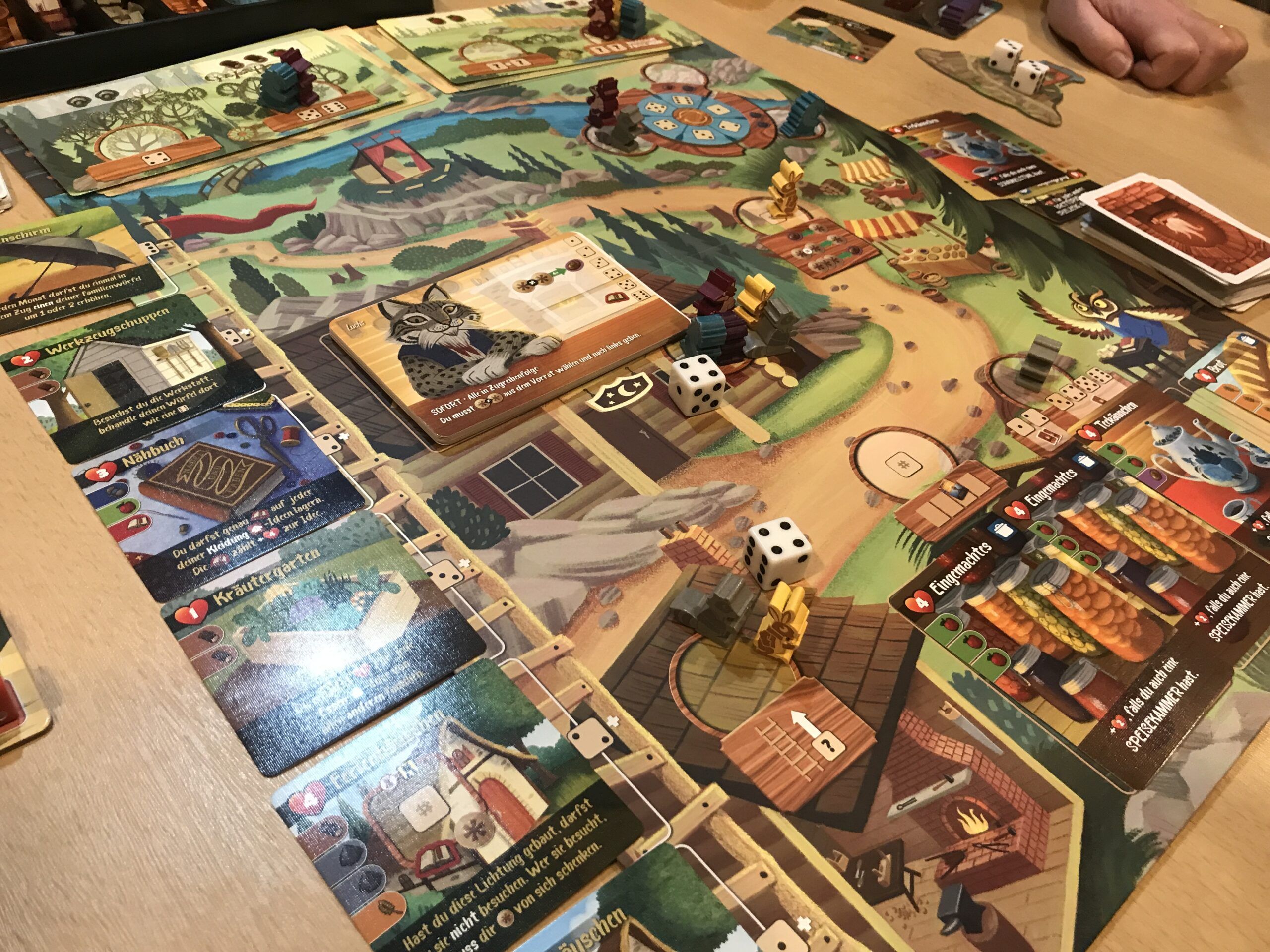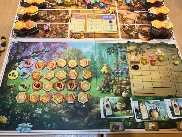 Vielleicht noch ein Wort zu den Tieren vom Ahorntal. Gleich an 3 Tischen wurde dieses zuckersüße Spiel gespielt, was mich an Azul-Hochzeiten erinnern ließ. Dieses Spiel wird sicherlich noch das eine oder andere Mal den Tisch schmücken, wenn auch eher in kleineren Spielrunden.