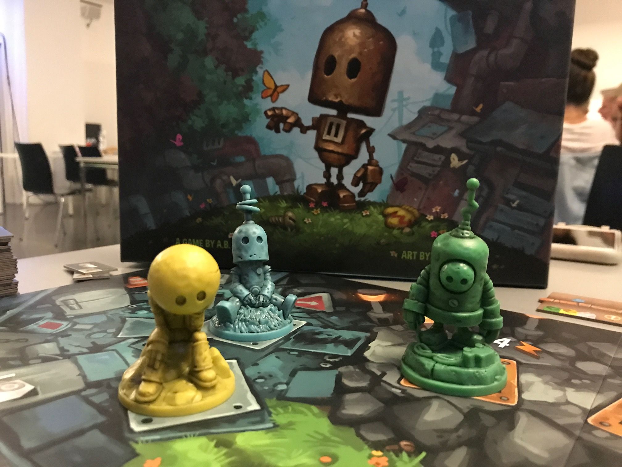 Freitag? Was macht Mensch da in Dortmund? Zum Beispiel zum Spieleabend der BrettspielUnion Dortmund gehen. Dies taten auch über 50 Menschen, um im Dortmunder U auf der zweiten Etage zu spielen. Allerhand Spiele lagen aus, um ins ferne Universum zu düsen, um kleine Roboter im Kreis laufen zu lassen, Wein anzubauen, oder auch Stichspiele zu spielen, verfluchte Buchseiten zu schließen oder gar Faschisten-Identitäten auf die Schliche zu kommen.
